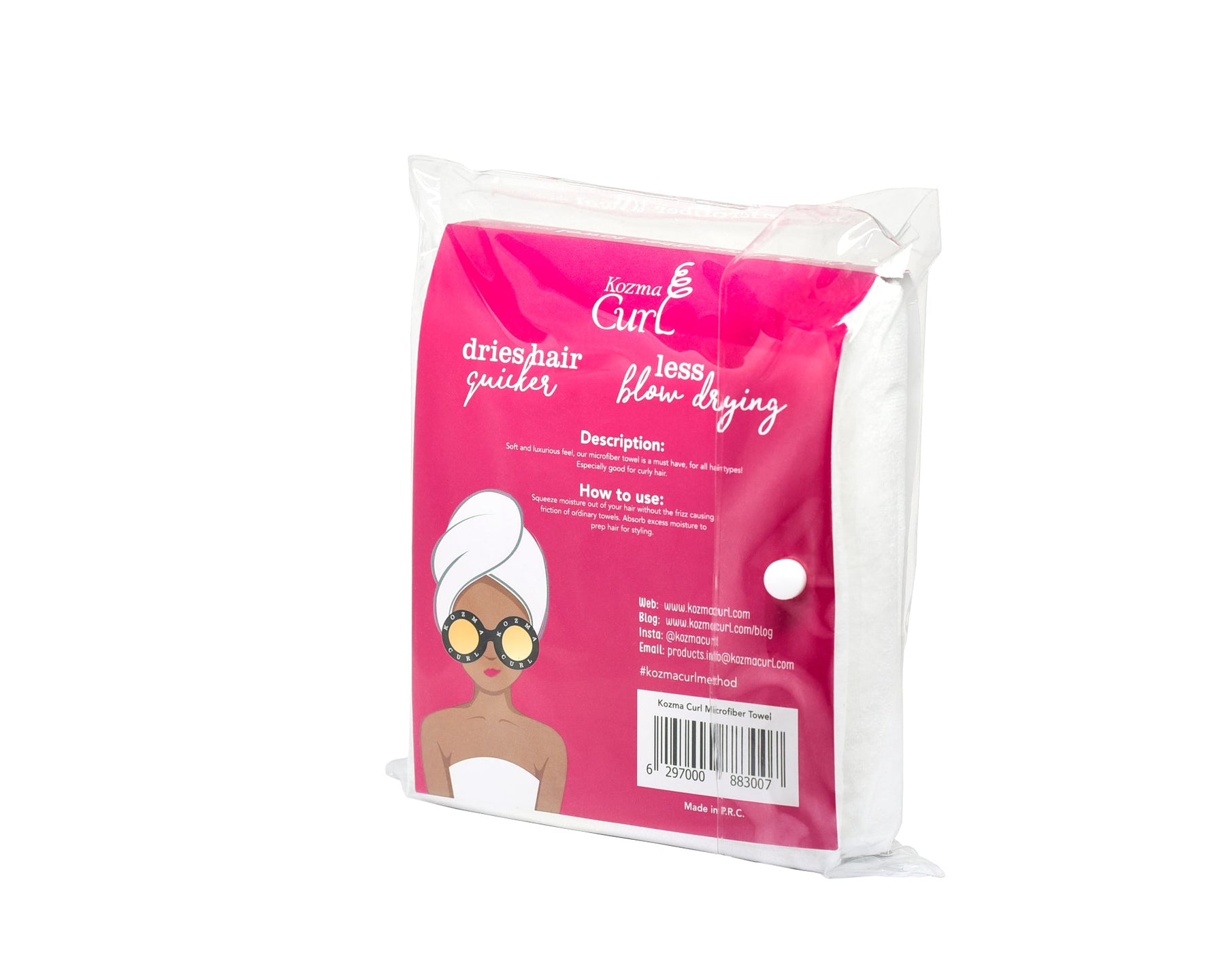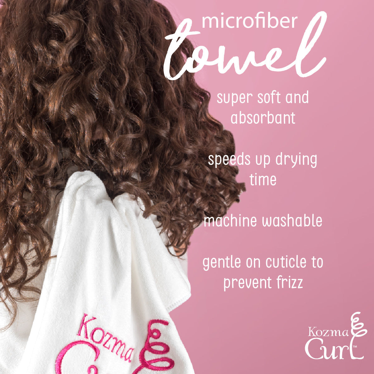 Our super soft microfiber towel for curly hair is one of the best hair products for curly hair (otherwise known as a turban or curly hair wrap) reduces frizz and drying time is cut in half! Amazingly soft and luxurious, the Kozma Curl Microfiber Towel is a must-have for all curl types! Absorbent material dries natural curly hair quicker. Enjoy less frizz! This gentle towel absorbs the excess water from your hair, without the frizz causing friction of ordinary towels.