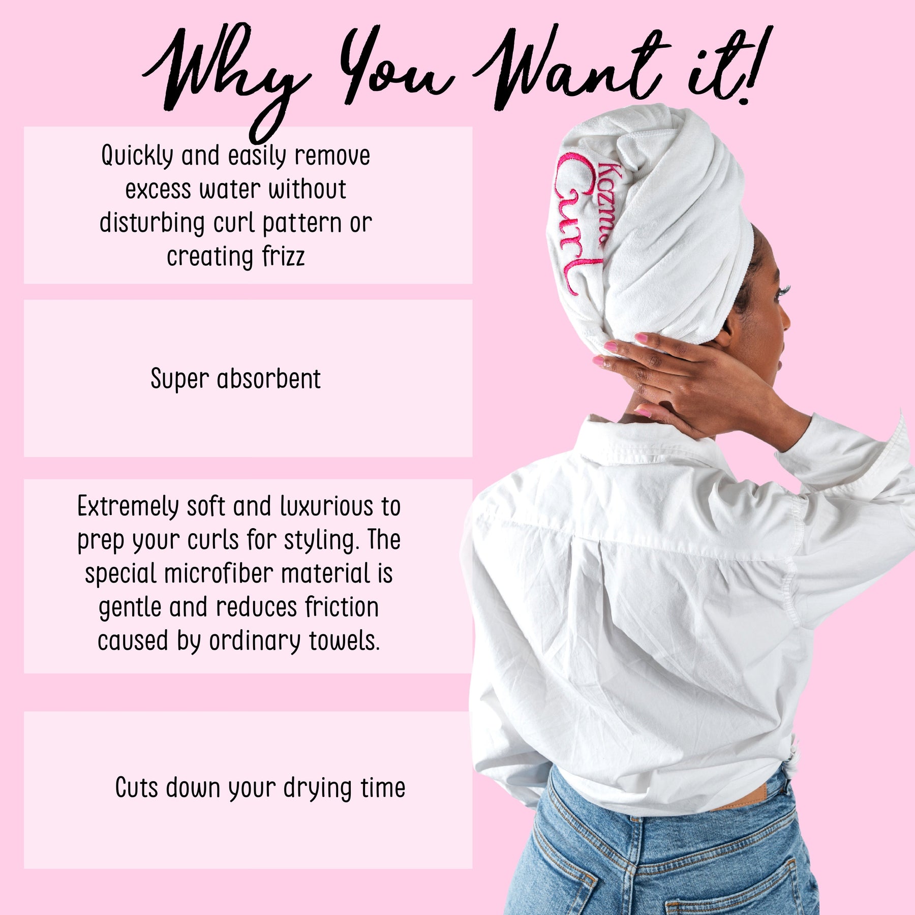 We designed this towel with your curls in mind. You'll love how soft and fluffy this absorbent towel is.